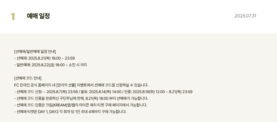 - 일반 예매 : 2025년 8월 22일
