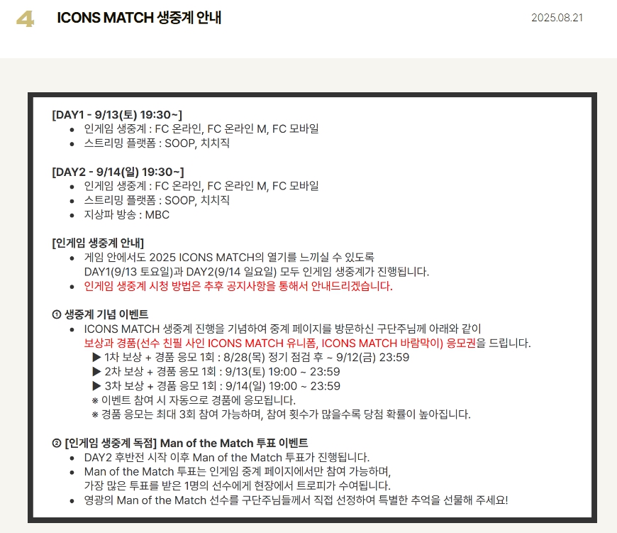 2025년 9월, 축구 팬들의 가슴을 뛰게 할 아이콘 매치(ICONS MATCH)가 서울월드컵경기장에서 열립니다.