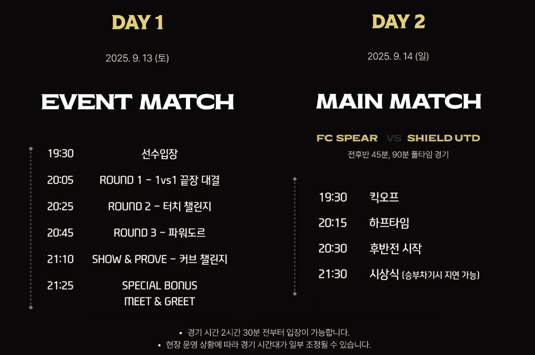 - 경기 일정 : 2025년 9월 13일(토) ~ 14일(일)