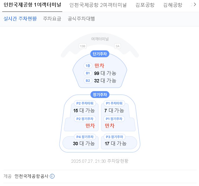 인천공항 홈페이지와 모바일 앱에서도 각 주차장별 잔여 주차 공간을 실시간으로 볼 수 있습니다. 🅿️📱
