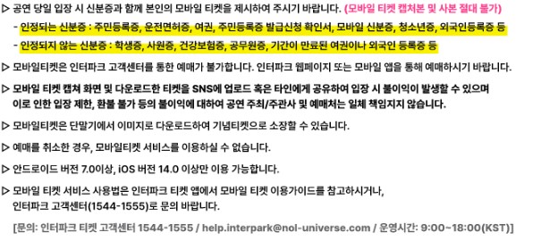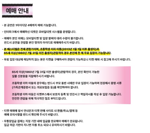 - 1인당 예매 가능 매수 : 최대 4매